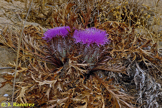 Pastizales nitrófilos, laderas pedregosas y claros de matorral, en sustratos calcáreos.