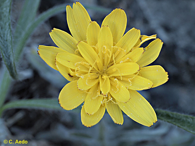 Ánica, ánnica, árnica, carmelita descalza, cenizo, cerraja lanuda, chicoria de la pared, dulce, gazapegos, hierba de los pujos, lechera, mazapegos, pan de conejo, pata de perro, pugera, pujo, tamillo, viniebla.